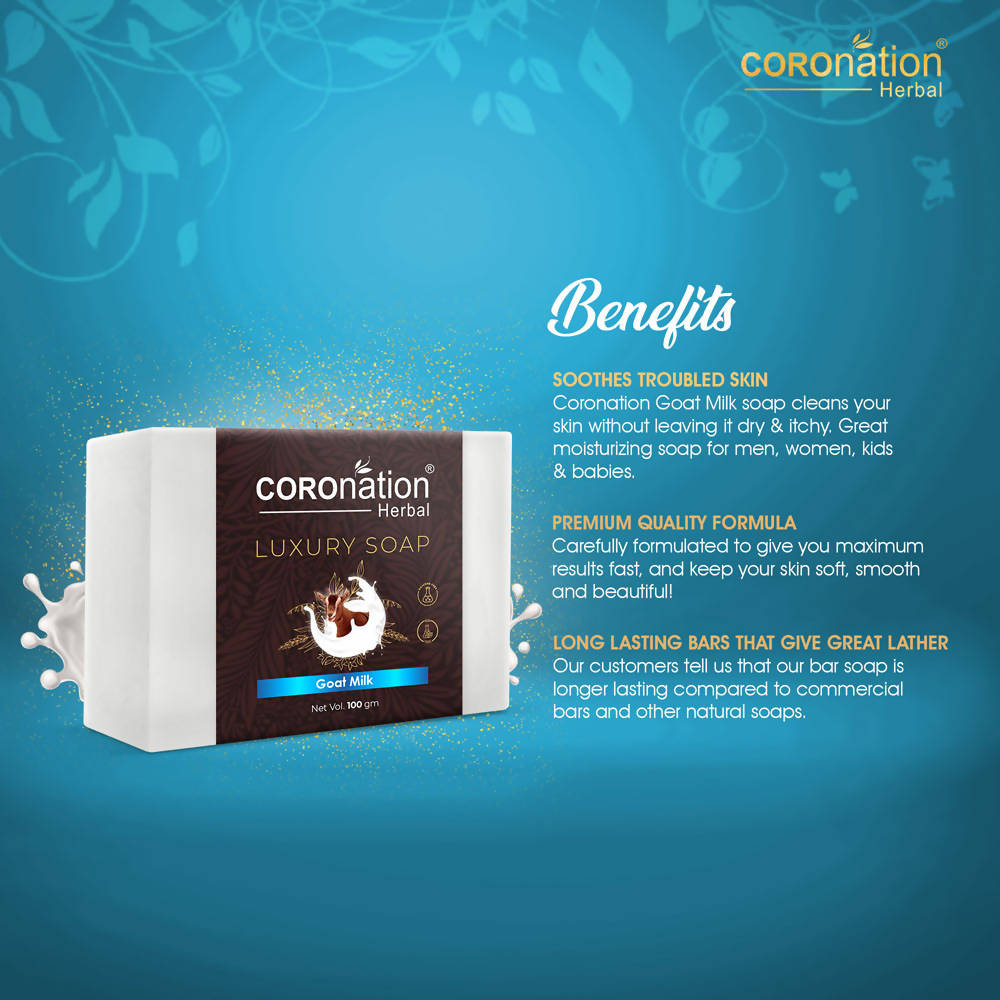 - CALMS IRRITATED SKIN – Coronation Herbal Goat Milk soap purifies your skin without causing dryness or itchiness. An excellent moisturizing option for men, women, children, and infants.
