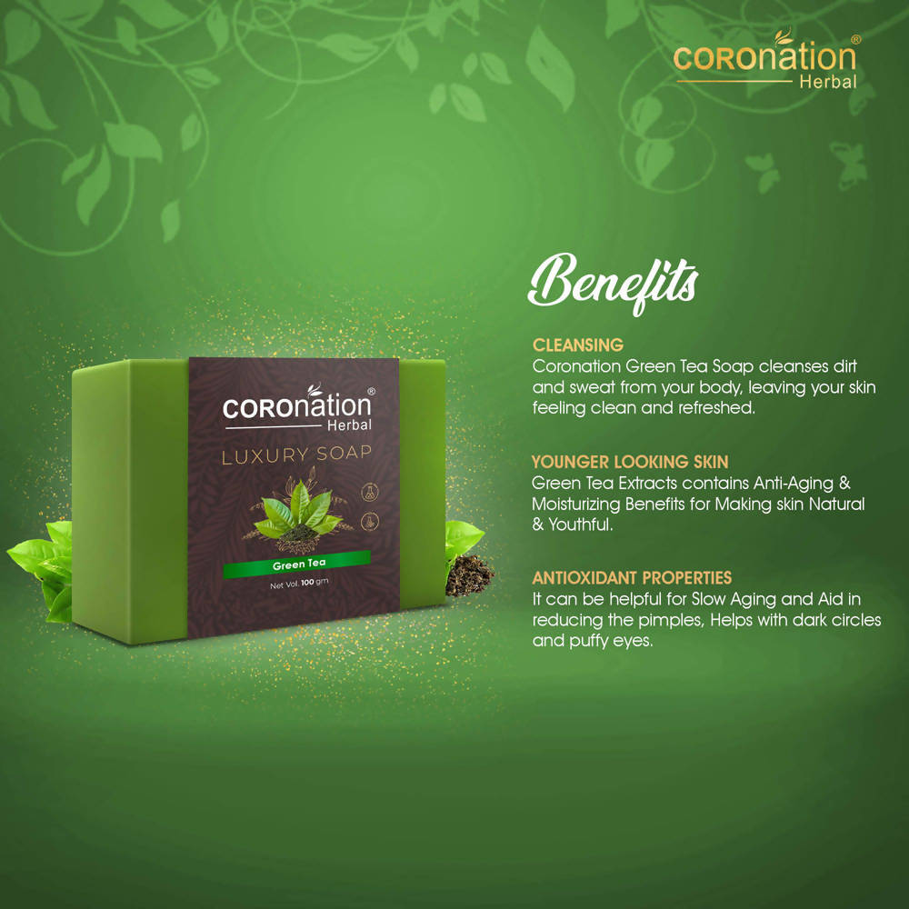 - CLEANSING: COROnation Herbal Green Tea Soap removes dirt and perspiration from your body, leaving your skin feeling refreshed and purified.