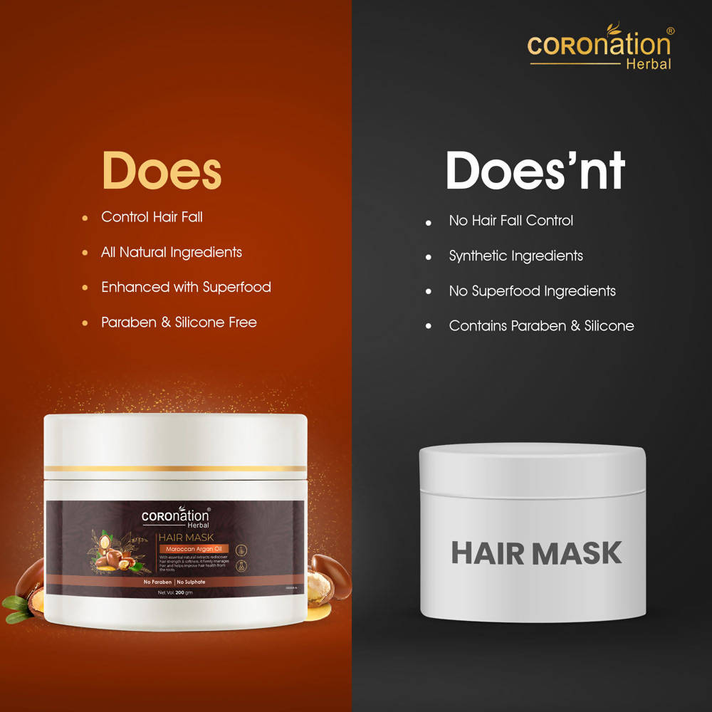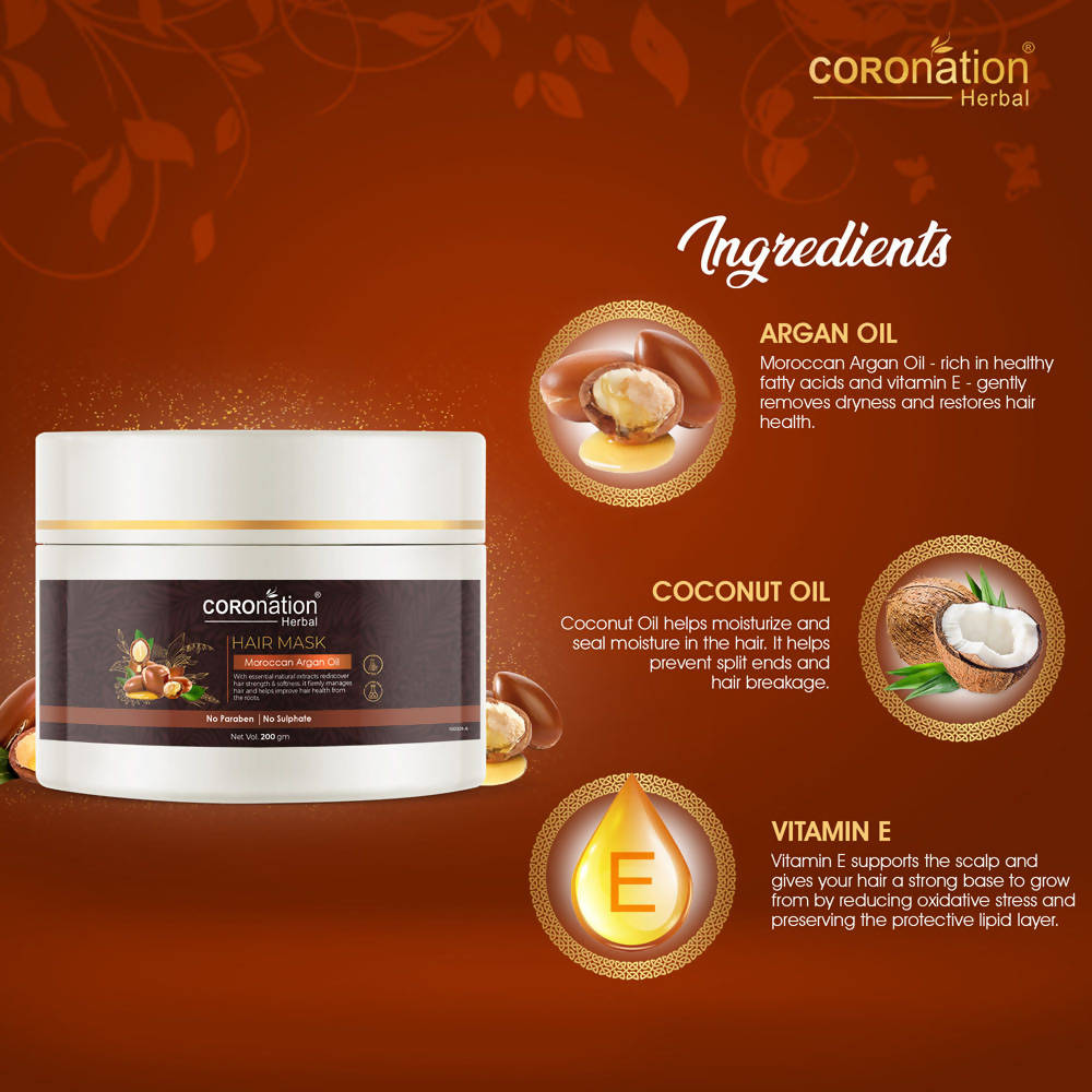 - BENEFITS OF PURE ARGAN OIL: The COROnation Argan Oil Hair Mask aids in rediscovering hair's strength and softness. Enriched with essential natural extracts, it effectively manages hair and supports improved hair health from the roots.