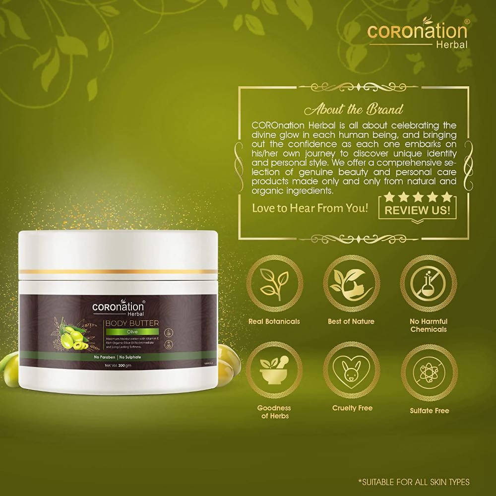 Experience lavish hydration with Coronation Herbal Olive Body Butter. Enriched with antioxidant-packed Olive Oil, Vitamin E, and Aloe Vera, this formula leaves your skin feeling exquisitely smooth. Olive Butter delivers essential moisturizing oils to your skin's surface, sealing them with a waterproof barrier. It alleviates irritation and aids in repairing skin damage.