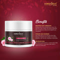 The Coronation Herbal Pink Rose Clay Face Mask, enriched with rose powder and essential oil, possesses calming properties and antioxidants that aid in skin repair and reduce imperfections such as blemishes and uneven skin tone. This formulation aids in the skin's rejuvenation process and maintains the natural lipid barrier.