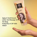 - Dispense a small quantity into your hands and spread over dampened face and body. Gently massage using circular movements and rinse thoroughly with water. Be cautious to avoid eye contact.