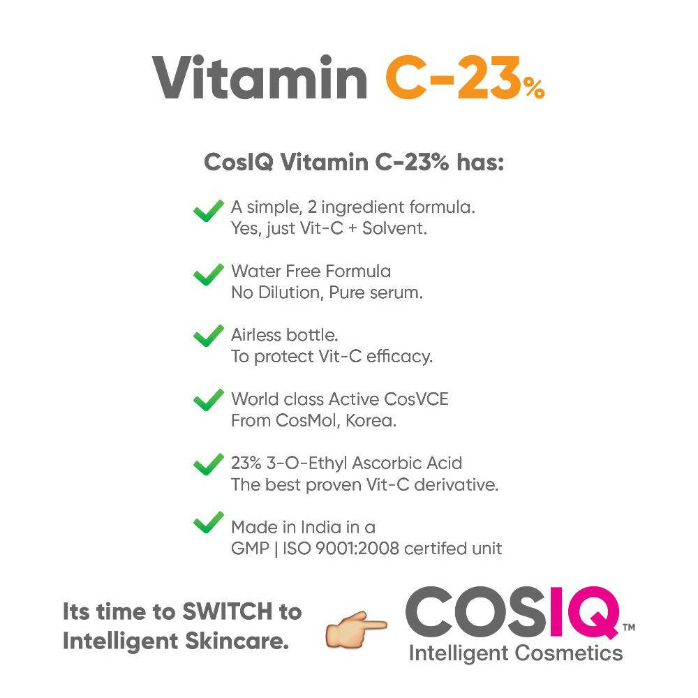 - Containing 23% Vitamin C in the form of 3-O-Ethyl Ascorbic Acid, this serum delivers remarkable radiance. With just two ingredients, it enhances your skin's luminosity by diminishing blemishes and smoothing fine lines. The serum's active components penetrate deeply to rejuvenate and refine uneven skin texture. It effectively targets hyperpigmentation caused by unprotected sun exposure. The antioxidant power of Vitamin C shields against UV-induced photodamage and premature aging caused by free radicals and oxidative stress. This serum also enhances skin firmness and suppleness by boosting elasticity. Additionally, it addresses other skin concerns such as acne, excess sebum, and dark spots.