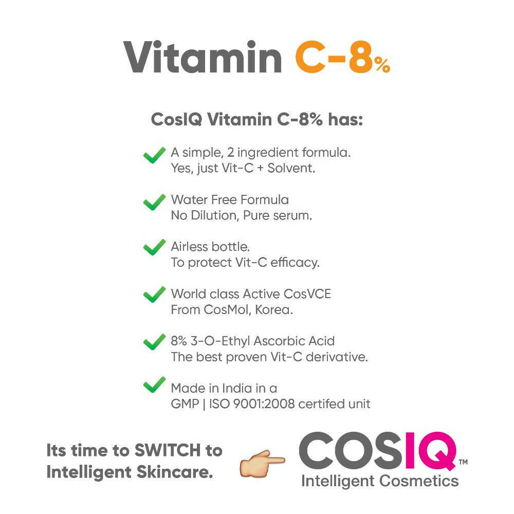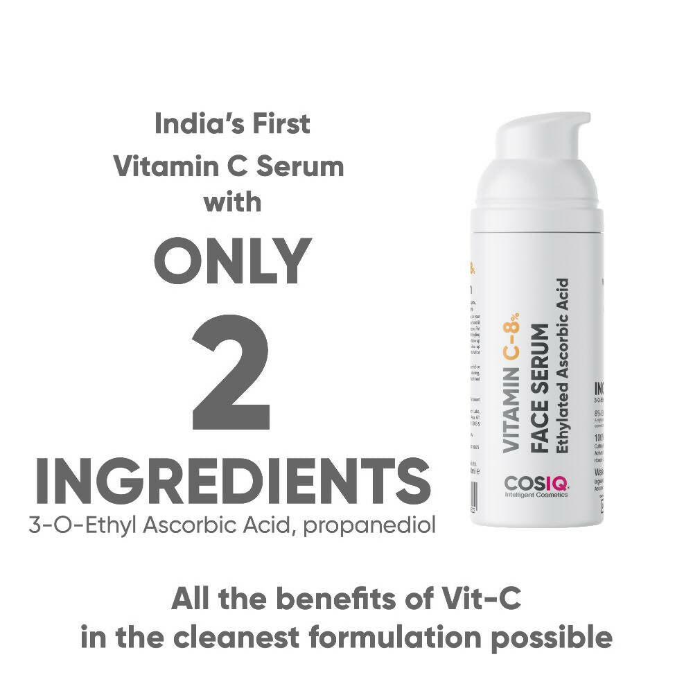 - Featuring 8% Vitamin C in the form of 3-O-Ethyl Ascorbic Acid, this serum delivers a remarkable brightening effect. Its minimalist formula, composed of only two ingredients, enhances your skin's radiance by diminishing blemishes and smoothing fine lines. The serum's potent components penetrate deeply to rejuvenate and harmonize uneven skin texture. It effectively addresses hyperpigmentation resulting from sun exposure without protection. The antioxidant qualities of Vitamin C shield your skin against UV-induced damage and premature aging caused by free radicals and oxidative stress factors. This serum firms and plumps the skin by enhancing elasticity. Additionally, it tackles other skin concerns such as acne, excessive oil production, and dark spots.