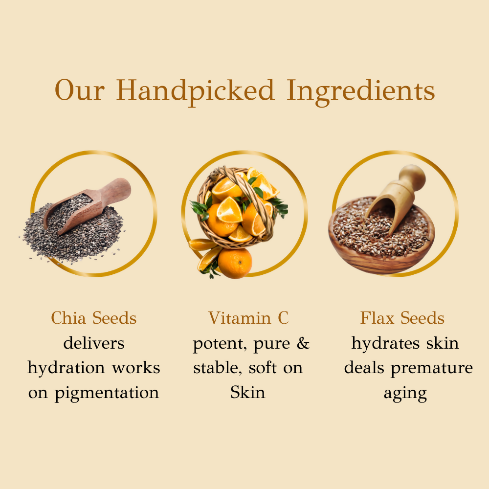 - Discover the secret to luminous, youthful skin with dBasic Vitamin C Serum, enhanced by the benefits of Chia and Flax seeds. This potent elixir delivers a significant amount of Vitamin C to illuminate and balance skin tone, while the omega-rich Chia and Flax seeds deeply nourish and strengthen the skin's barrier.