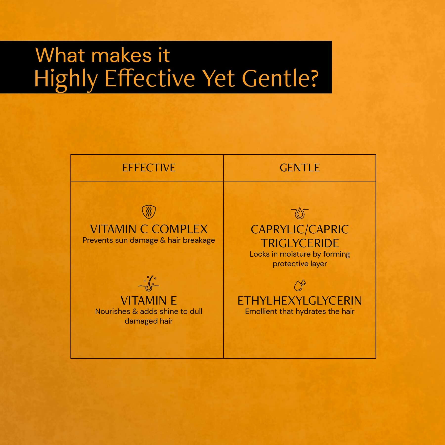 - Deconstruct Vitamin C Hair Serum is packed with antioxidants, featuring a potent blend of 1% Vitamin C complex and 0.2% Vitamin E. This duo works to shield your hair from sun damage by neutralizing harmful free radicals while enhancing overall hair health by nourishing and reducing the likelihood of breakage. This Vitamin C serum for hair imparts a brilliant shine to hair that is dry, dull, and damaged. It also delivers excellent hydration to the hair strands, ensuring they remain well-nourished.