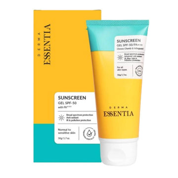 - Dispense the desired amount of Derma Essentia Sunscreen SPF 50 Gel onto your fingertips.