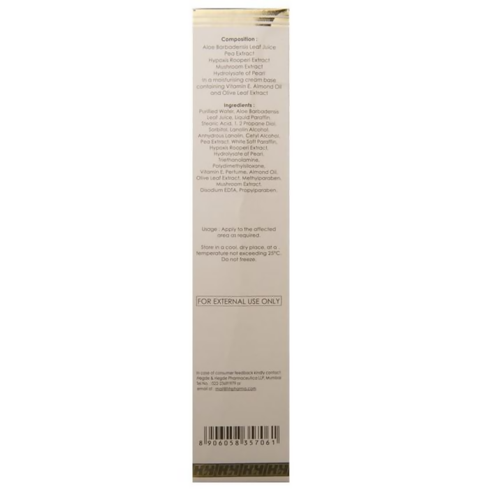 Dermadew Glow Cream is a skincare product designed to impart a natural radiance to your complexion, leaving it soft and supple. It comprises aloe vera leaf juice, hydrolysate of pearl, and hypoxis rooperi extract. Aloe vera leaf juice is known for its antibacterial and antifungal attributes. Pearl contributes to a glowing and luminous skin appearance. Hypoxis rooperi extract assists in diminishing visible blemishes and age-related marks.