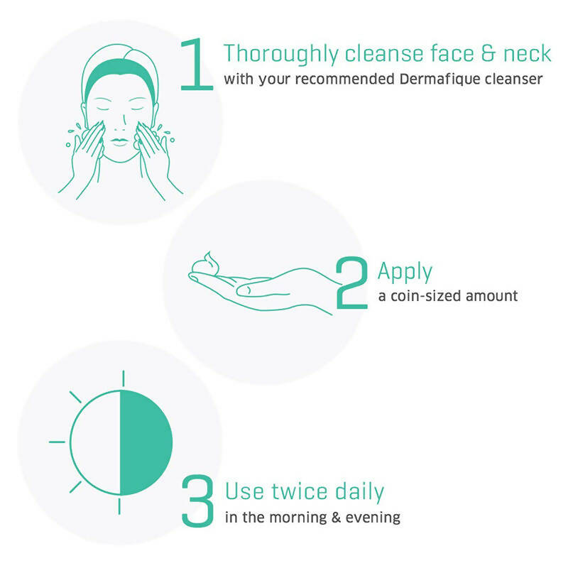 - Cleanse your face and neck thoroughly with the recommended Dermafique Cleanser