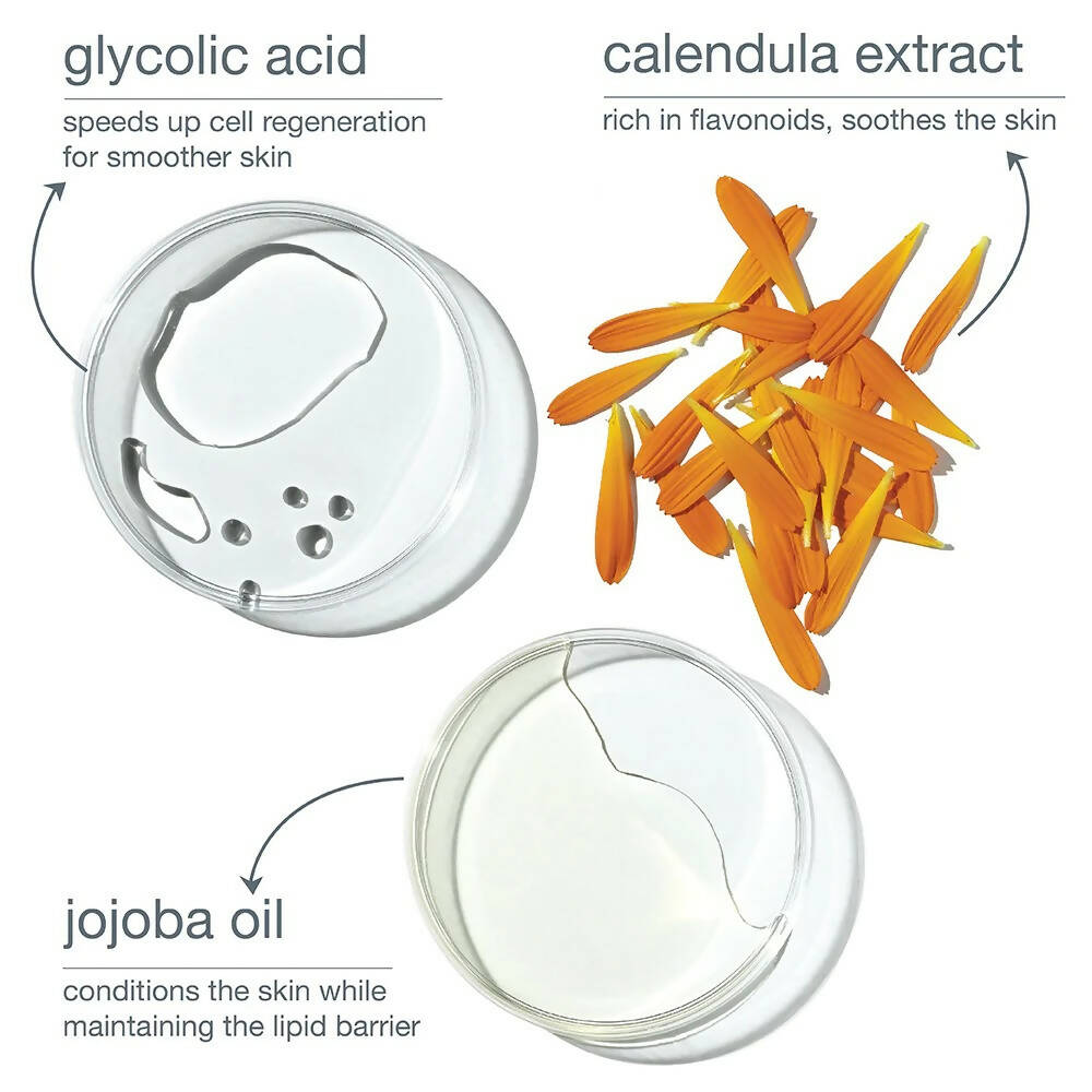 - This illuminating and fortifying face wash revitalizes lackluster, uneven complexions by eliminating accumulation from environmental stressors. Glycolic Acid enhances brightness by dissolving and shedding dull, dead skin cells, unveiling a luminous, healthy appearance. A medley of calming Calendula Extract and enriching Jojoba Seed Oil aids in conditioning and rejuvenating the skin while preserving its lipid barrier.