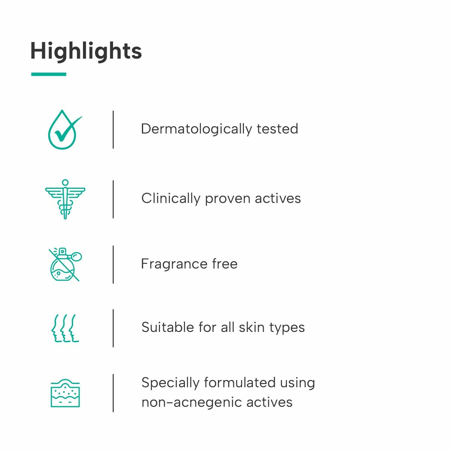 About the Product:- ANTI-ACNE FORMULA: This lightweight solution with non-acnegenic components protects against acne-causing bacteria, diminishing the likelihood of acne development and flare-ups.