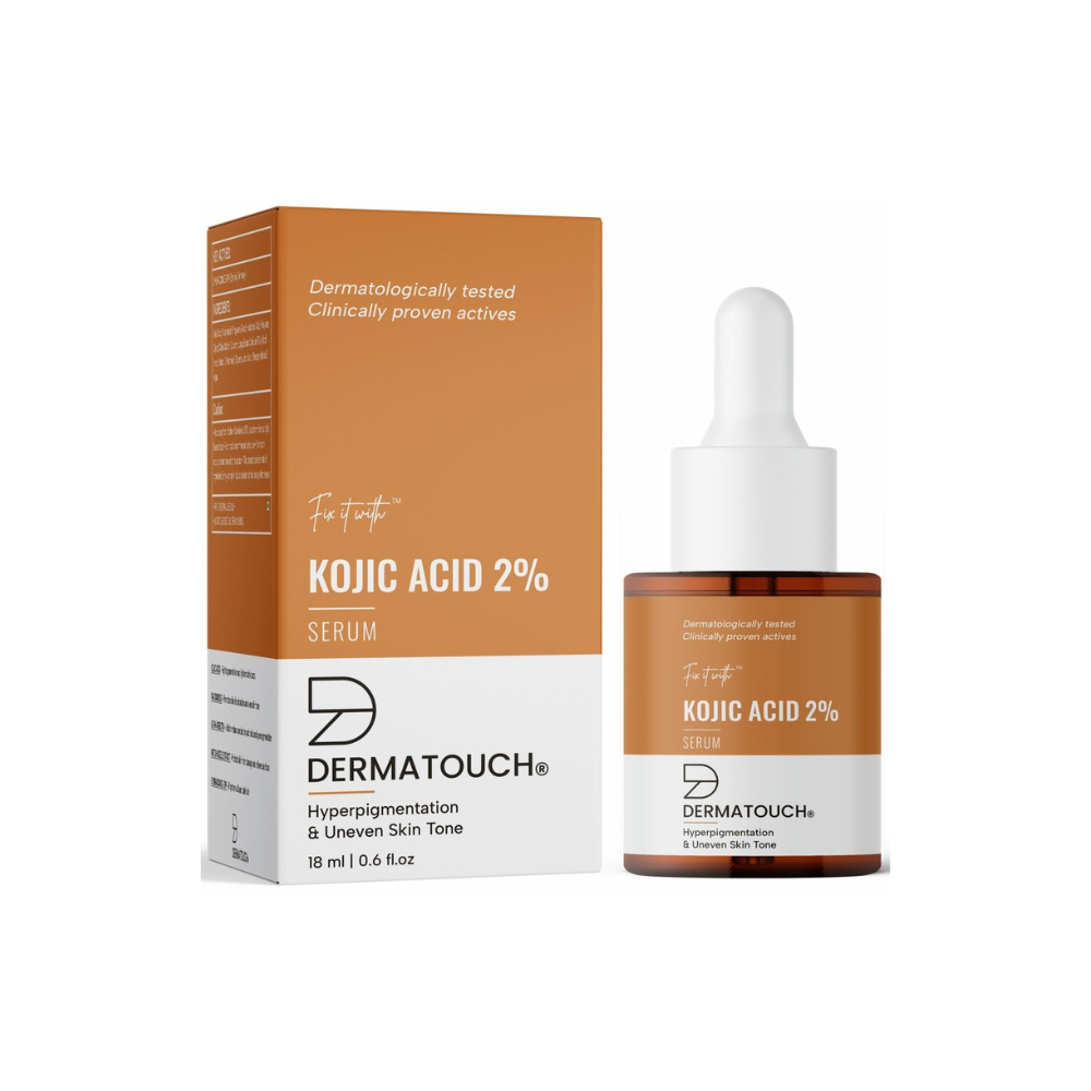 - Dermatouch Kojic Acid 2% Serum is expertly designed to address hyperpigmentation caused by sun exposure. The serum inhibits tyrosinase activity and melanin production, serving as an ideal solution for lightening unwanted pigmentation and skin discoloration.