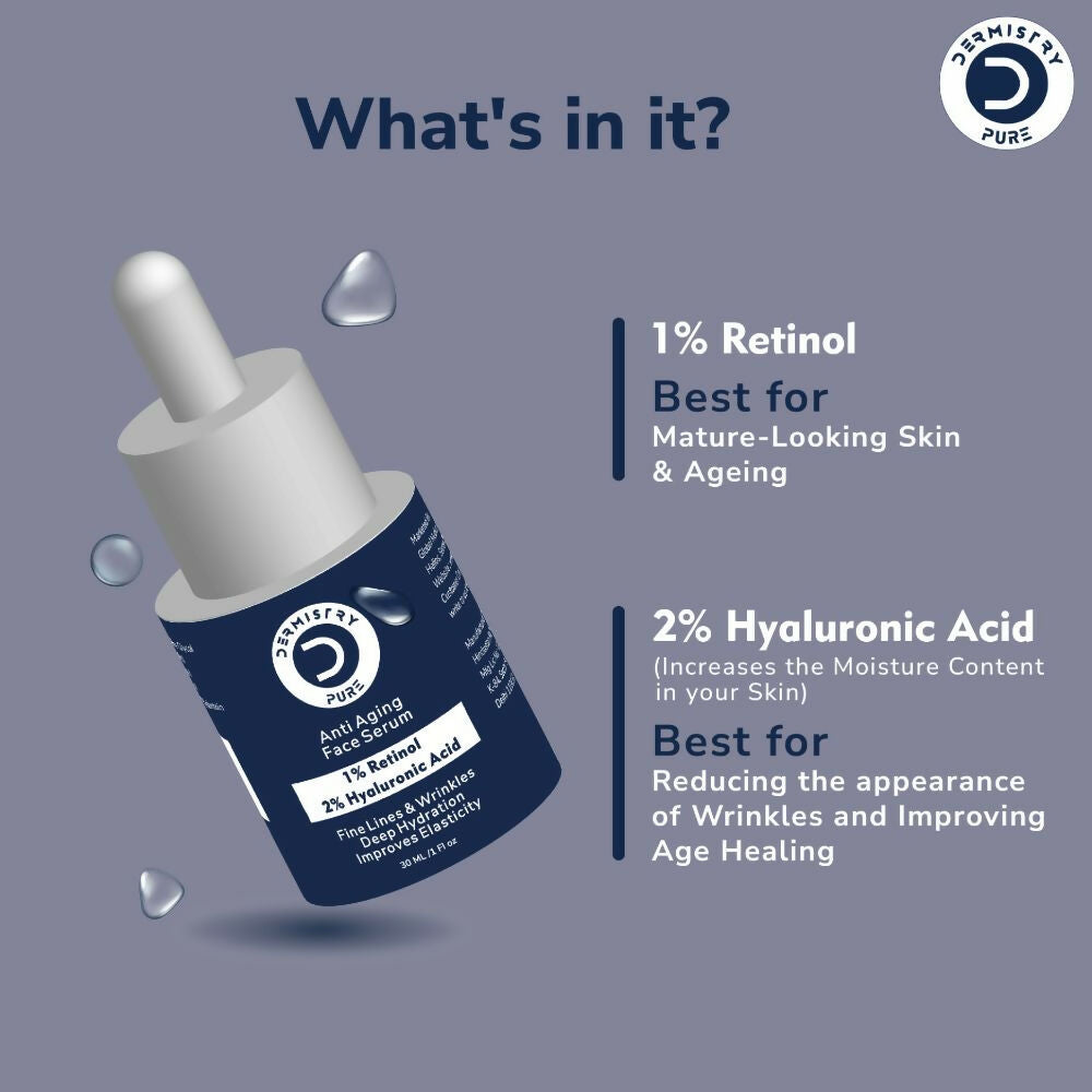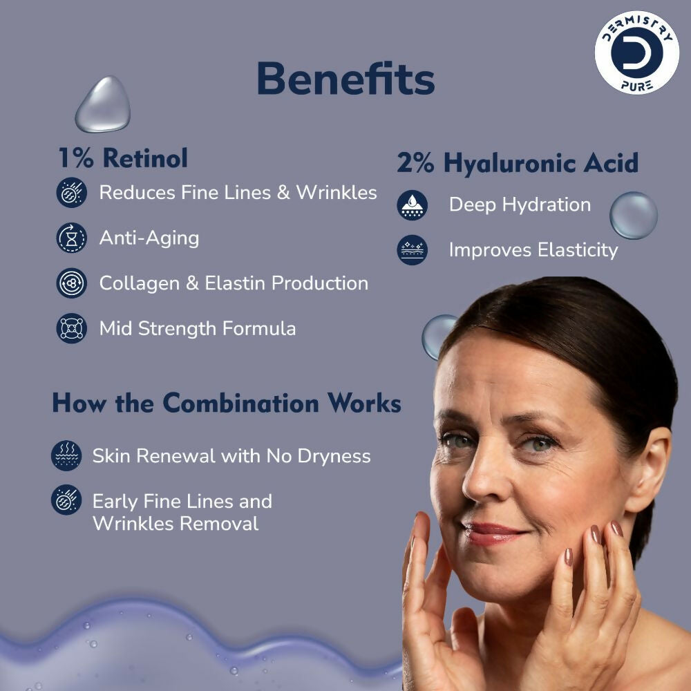 Dermistry Pure 1% Retinol 2% Hyaluronic Acid Anti Aging Moisturizer Face Serum Fine Lines & Wrinkles