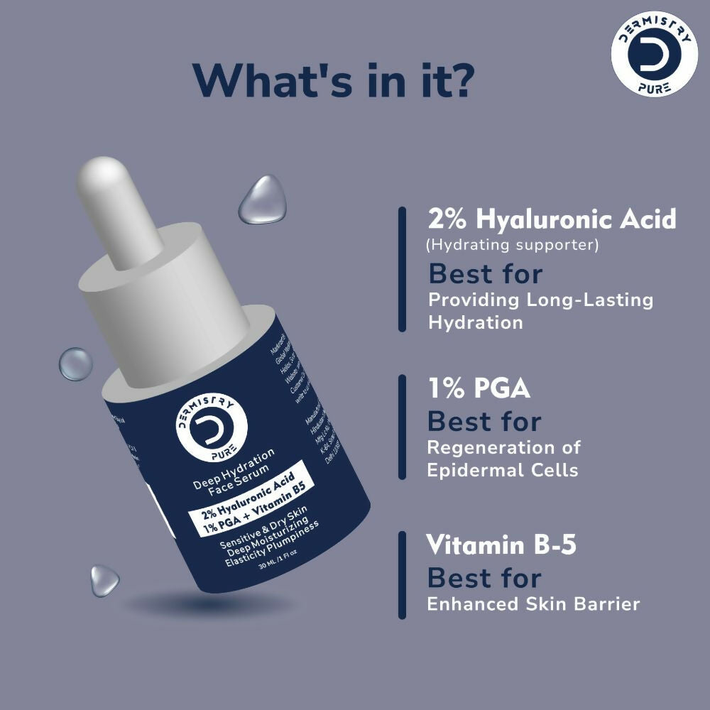 Dermistry Pure 2% Hyaluronic Acid 5% PGA Vit B5 Moisturiser Face Serum For Sensitive & Dry Skin