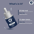 A blend of 2% Kojic acid and 1% Alpha Arbutin effectively targets hyperpigmentation, dark spots, and uneven skin tone by curbing melanin production.