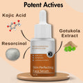 - Dermistry No Pigmentation Face Mask and Face Serum are expertly crafted for sun-exposed skin. Enriched with scientifically derived natural components such as Kaolin Powder, Kojic Acid, Mulberry Extract, and Vitamin A, these products work wonders. The kojic acid within helps to suppress melanin formation and brightens the skin tone with regular use. Vitamin A contributes to moisturizing and hydrating your skin. It may assist in diminishing the appearance of scars, keeping the skin supple and youthful, and minimizing age spots due to its antioxidant qualities. Mulberry extract may aid in reducing the visibility of scars, maintaining smooth and youthful skin, and lessening age spots due to its antioxidant properties. Dermistry Skin Perfecting Face De-tan Mask is a skin-brightening product.