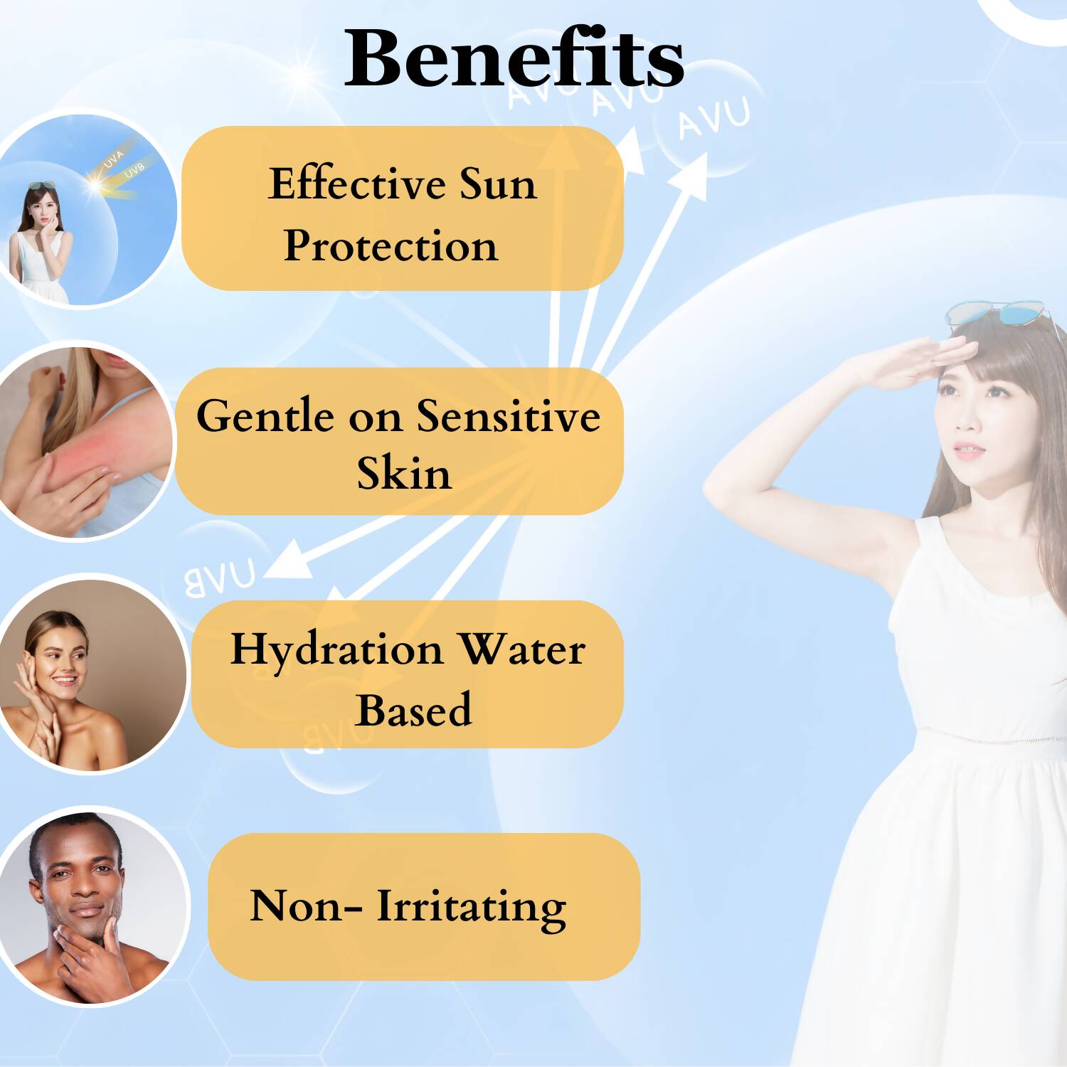 - Dermistry Hydra Nourishing and Mineral-Based Sunscreen with 1% Hyaluronic Water-Based formula combines the benefits of sun protection with skin hydration and nourishment
