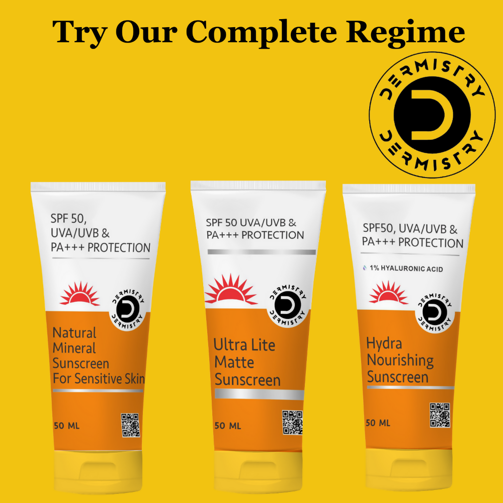 - The Dermistry Ultra Lite Matte Sunscreen SPF 50 is a specialized sunscreen offering robust sun defense with SPF 50, delivering a matte finish. It is crafted to shield your skin from the detrimental effects of UV exposure, such as sunburn and premature aging, while maintaining a non-greasy look. Below are the prominent features and advantages of the Ultra Lite Matte Sunscreen SPF 50.