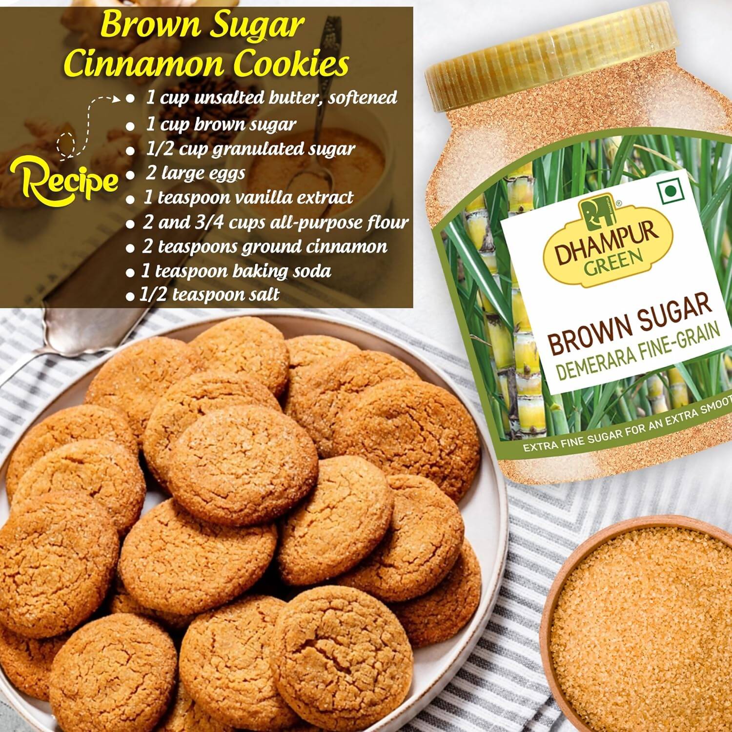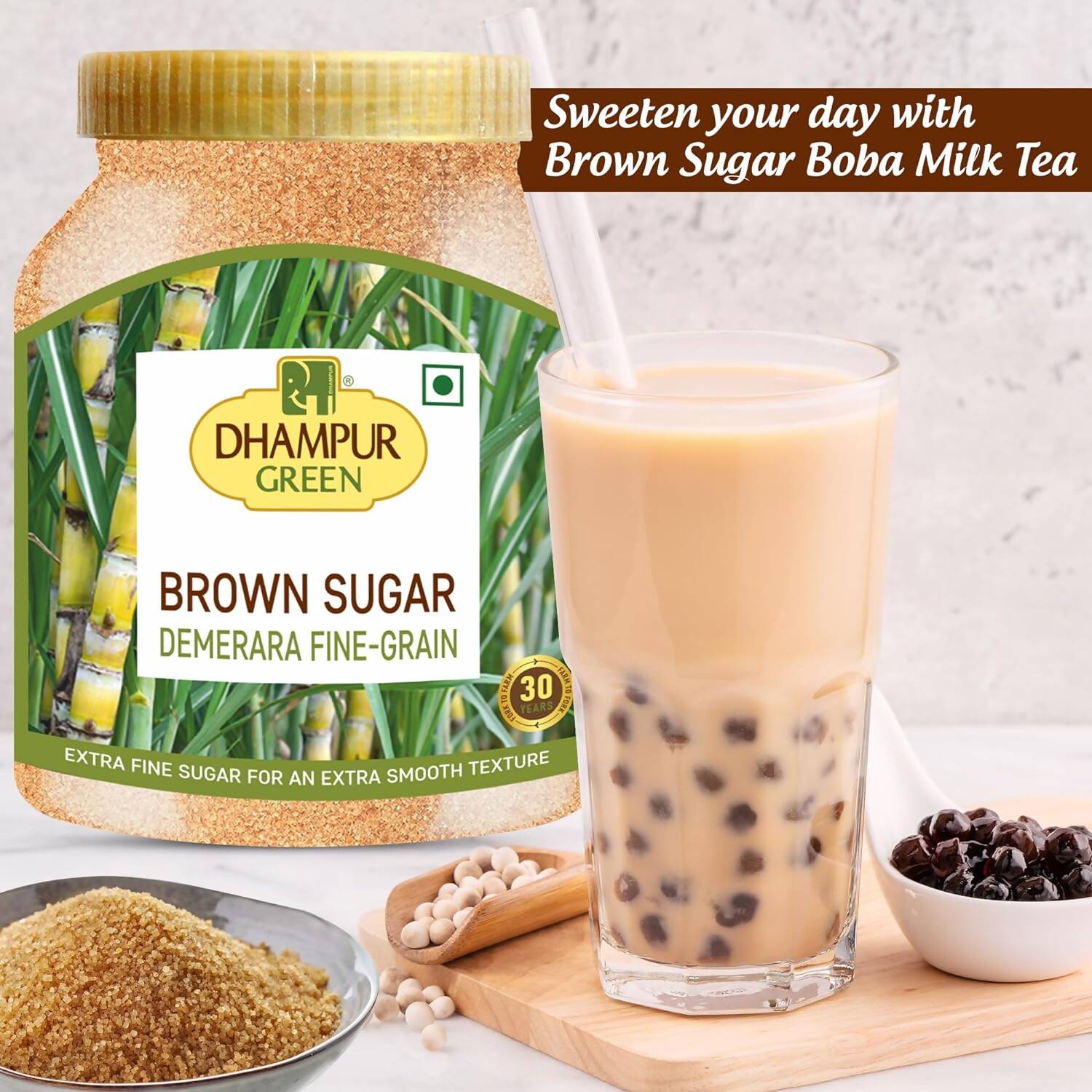 - Dhampur Green Demerara Sugar is esteemed by coffee aficionados as a vital component in crafting an impeccable cup of coffee. This delectable, naturally-brown golden granulated crystal boasts a traditional sugarcane flavor, is unbleached, and offers a light, subtle taste devoid of the intense molasses undertones found in darker brown sugars. Use it wherever you would utilize regular sugar. It is ideal for cooking, baking, and sweetening your coffee or tea. Bake cakes with it or sprinkle on your cereals, make tea with it, or add to your morning cup of tea or coffee—use it whenever you wish to substitute white refined table sugar.