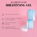 - LX-ME Brightening Gel is a versatile five-in-one moisturizing solution that hydrates, illuminates, and balances your skin. This multi-functional gel serves as a lotion, serum, milk, cream, and face mask all in one application. It features tranexamic acid to inhibit melanin production and sodium PCA to boost the absorption of tranexamic acid, leaving your complexion radiantly bright. Additionally, oligosaccharides enhance the skin's barrier function. Hyaluronic acid aids in moisture retention, while vitamin B reduces skin issues and enhances circulation. Plant-based moisturizing ingredients deliver enduring hydration and impart a radiant glow to your skin. Suitable for all skin types, including those with sensitivity. This formulation is free from parabens, alcohol, mineral oil, and artificial colorants.
