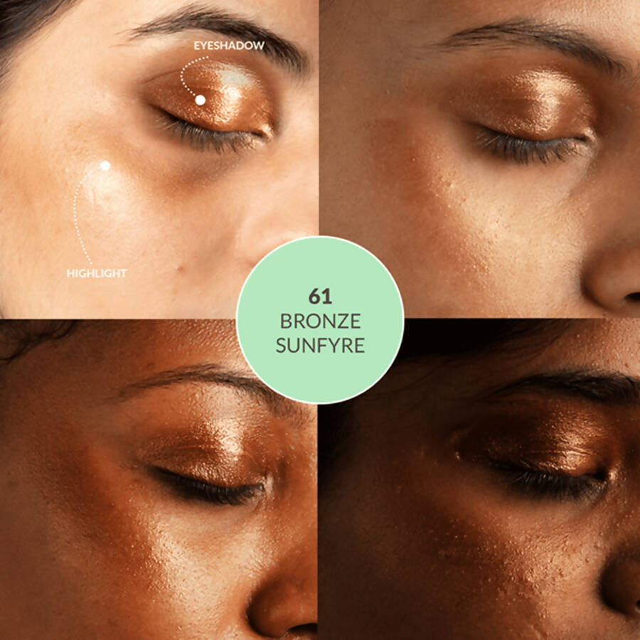 - As a highlighter: Apply to the cheekbones, lips, eyelids, and body and blend with your fingertips. It can also be used on bare skin or over makeup.