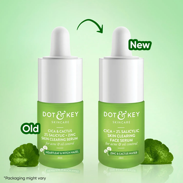 - Are you constantly battling acne, excess oil, and skin irritation? Say farewell to these issues with Dot & Key 2% Salicylic+Cica Face Serum. This lightweight and fast-absorbing serum is the perfect solution for oily, acne-prone skin. Enhanced with Active Fusion Technology, featuring 2% salicylic acid, cica, and zinc, and supported by cactus water, it gently exfoliates to unclog pores, addresses active acne, soothes irritation, and reduces excess sebum for a serene, clear, and acne-free complexion. Incorporate it into your morning and evening skincare routines for unparalleled results.