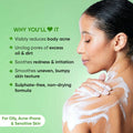 About the Product:- Infused with powerful acne-fighting components such as Cica, 1% Salicylic Acid, and Niacinamide, this exfoliating shower gel is designed for daily use to gently remove dead skin cells, unclog pores, eliminate excess oil, and diminish body acne, resulting in clear, smooth, and acne-free skin.