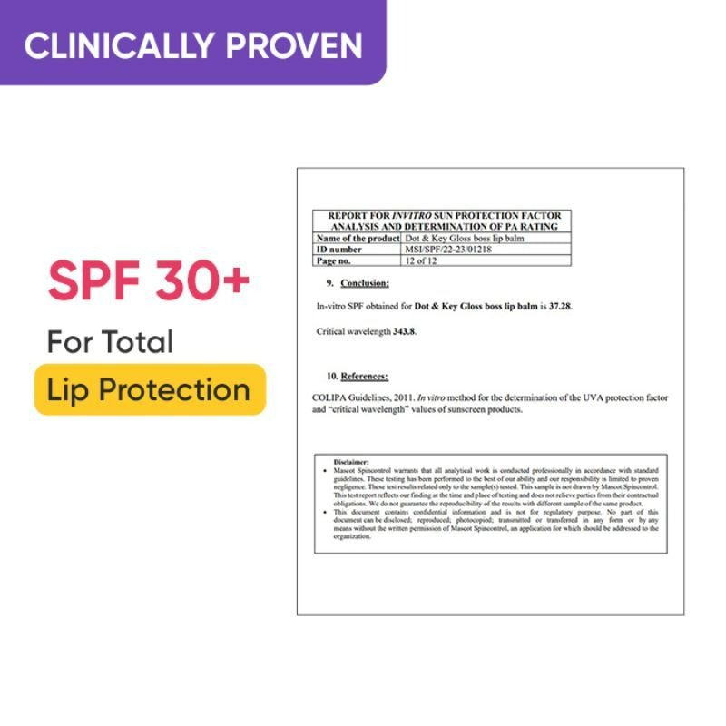 Experience the luxurious feel of Dot & Key's Gloss Boss Lip Balm, a velvety treat for your lips. Infused with the goodness of vitamins C and E along with shea butter, it is perfect for rejuvenating dry, discolored, and chapped lips. With SPF 30 protection, it helps prevent lip tanning. Crafted with pure fruit flavors, this balm delivers smooth, soft, and full lips with a lasting glossy finish.