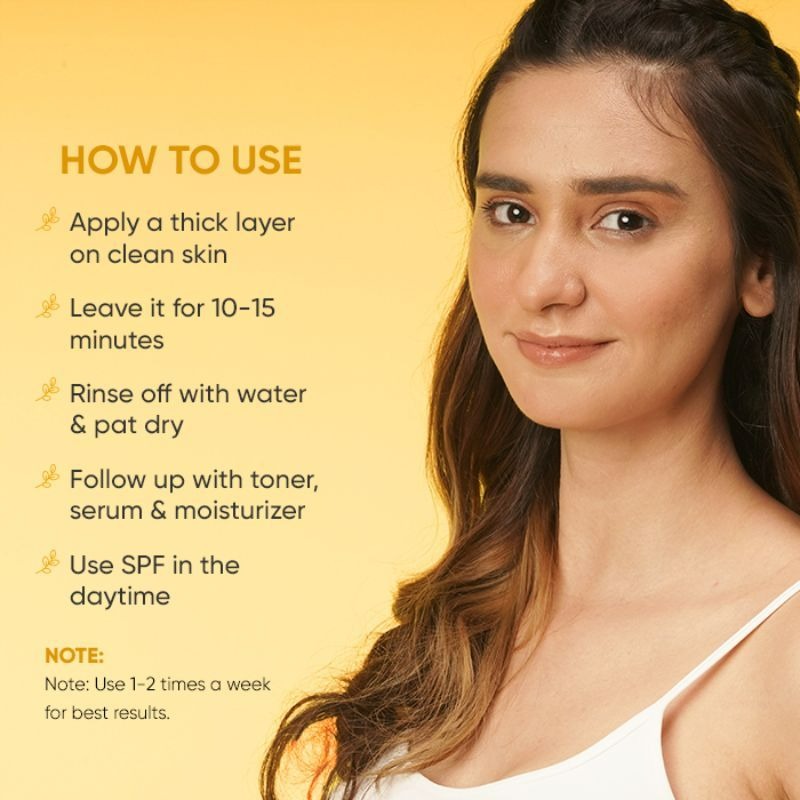 - 2. Apply a generous layer of the face pack evenly on areas needing tan correction.