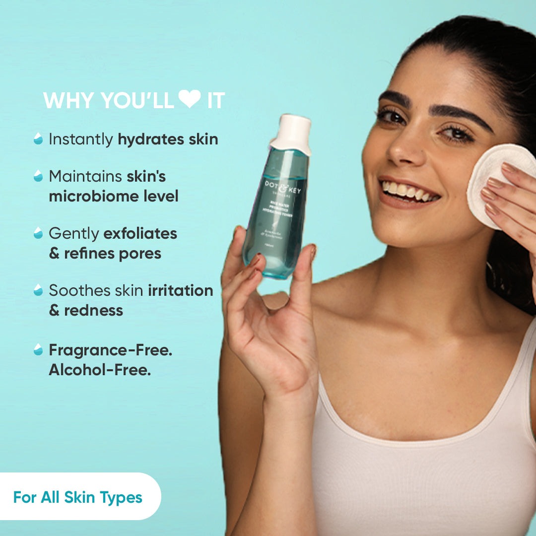 - Dot & Key’s Rice Water Probiotics Hydrating Toner combines the efficacy of moisture-boosting components such as Rice Water, Probiotics, and Hyaluronic Acid in a formula free of alcohol to quench parched skin. This toner also harmonizes the skin’s pH and fortifies the microbiome barrier.