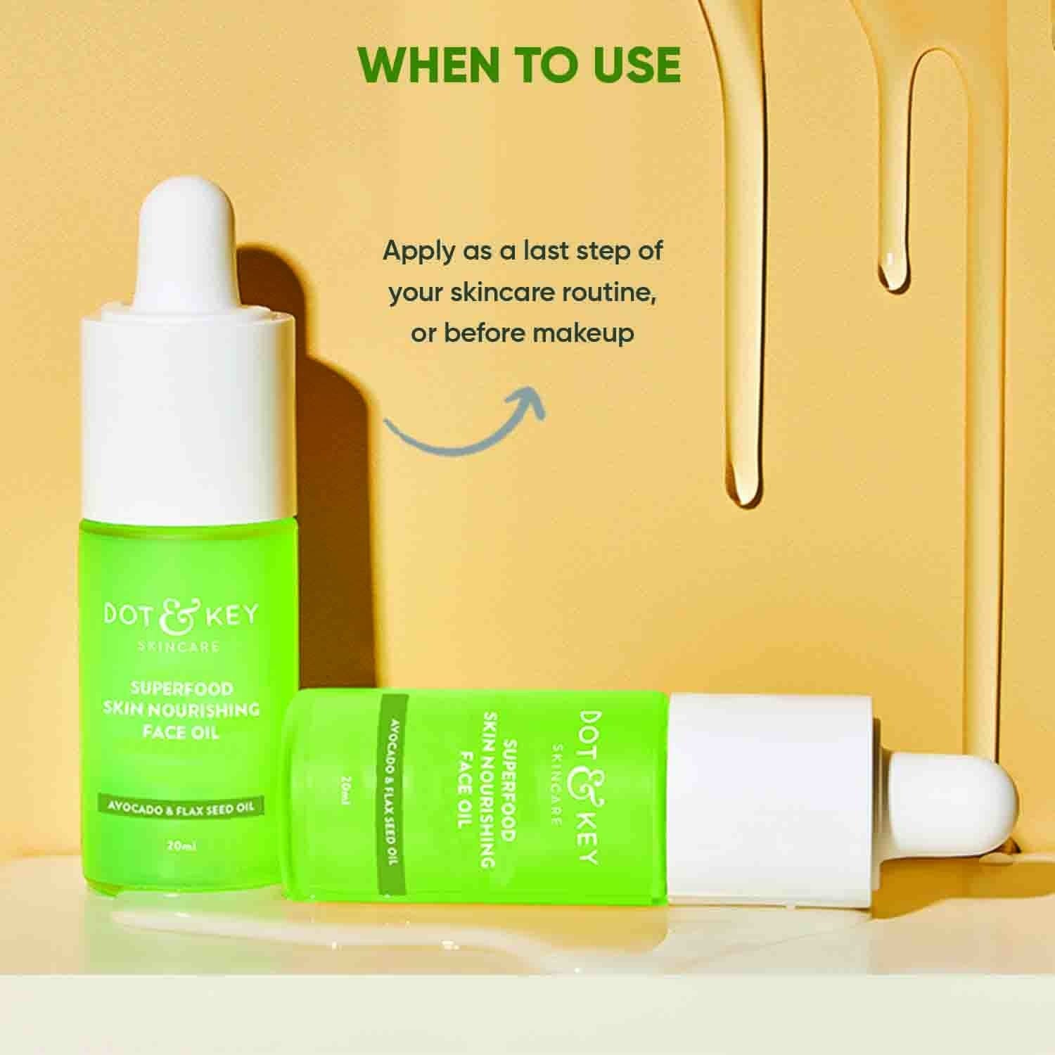 - Dispense 3-4 drops of the face oil as the final step in your skincare regimen