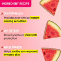 - Enriched with watermelon, aloe water, and advanced UV filters