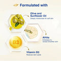 - Features a distinctive blend of AHA, Vitamin B3, and Olive Oil renowned for deep hydration, revealing smoother skin and diminishing dark spots