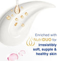 - Dove body lotion is infused with Nutri Duo for irresistibly soft skin. It allows you to leave the house swiftly and effortlessly. Smooth skin appears elegant, free of dryness, and enhances your overall look.