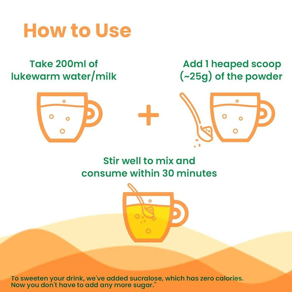 - To prepare the right dosage of Celehealth, you need to mix 1 heaped scoop (25g) of the powder in 200ml of lukewarm water/milk. Stir well to ensure there are no lumps in the solution and consume within 30 minutes. • 1-2 glasses of Celehealth per day are ideal for consumption.