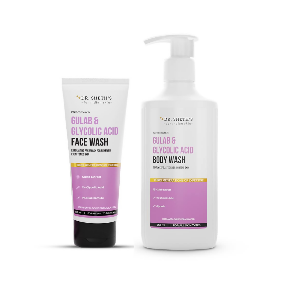 Dr. Sheth's Gulab & Glycolic Acid Face Wash & Exfoliating Body Wash Combo