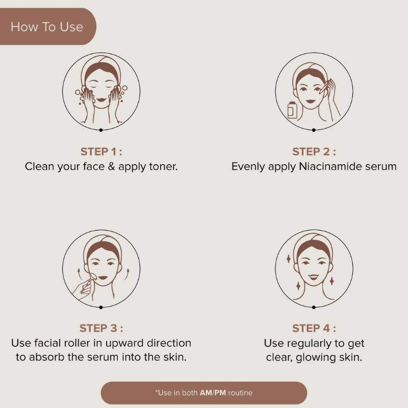 - Utilize the roller to massage the serum in upward motions to enhance absorption
