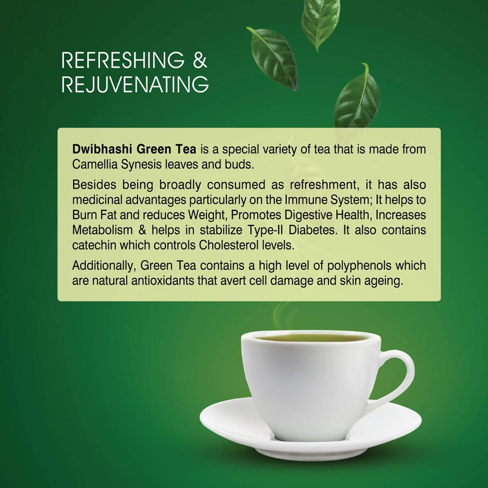 Enjoy the numerous health benefits of Chaha green tea, crafted from meticulously selected tea leaves. Dwibhashi’s green tea is a natural herbal infusion abundant in antioxidants and essential nutrients, offering a multitude of advantages for your well-being. Unlike many other green tea products that use synthetic chemicals to extend shelf life and enhance quality, Dwibhashi's herbal green tea is completely natural and free from harmful additives.