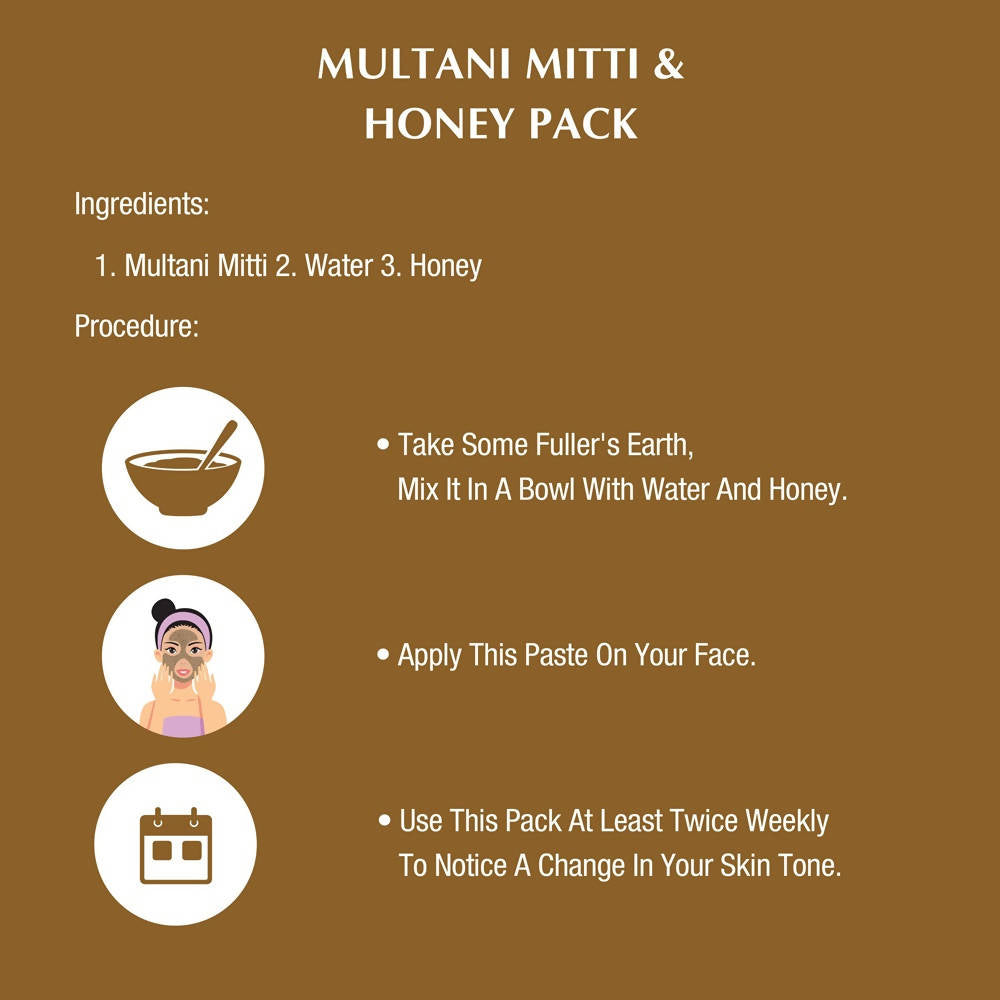 - Take an adequate amount of Multani Mitti and mix it into a smooth paste using half a spoon of honey and water for those with dry or normal skin.