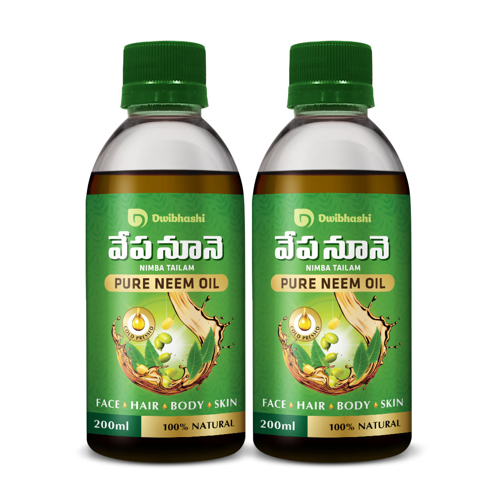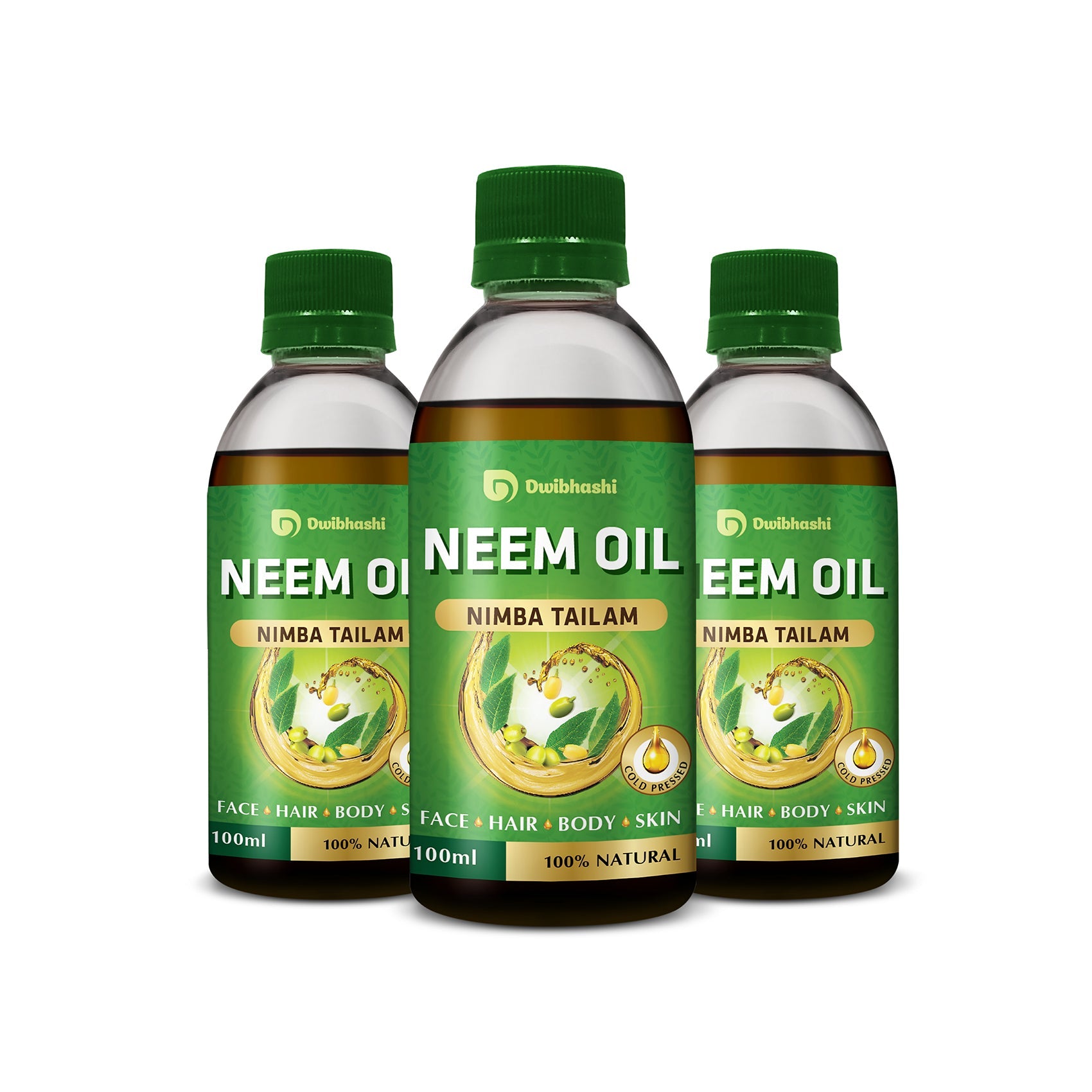 Dwibhashi's Neem oil is unadulterated and entirely natural. It is a prevalent choice throughout India. This oil possesses anti-dandruff benefits and effectively eliminates dandruff and flakes from the scalp. Additionally, it alleviates itching and dryness by hydrating the scalp. It fortifies the hair and roots, thus minimizing hair breakage and hair loss.