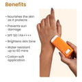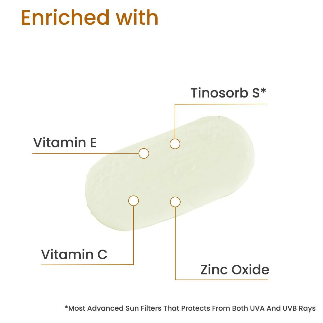 - Crafted with Zinc Oxide, this product shields your skin from damaging UV rays, aids in healing, and maintains oil balance. It also includes Vitamin C, renowned for its antioxidant and brightening effects, along with Vitamin E, which effectively mitigates UV damage. It nourishes and protects your skin from harm caused by free radicals.
