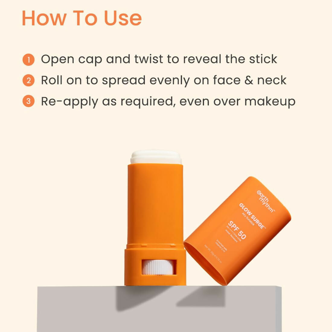 Earth Rhythm Glow Sunscreen Stick SPF 50 PA++++ with Vitamin C, Zinc Oxide, Vitamin E, Water Resistant, Lightweight, No white cast