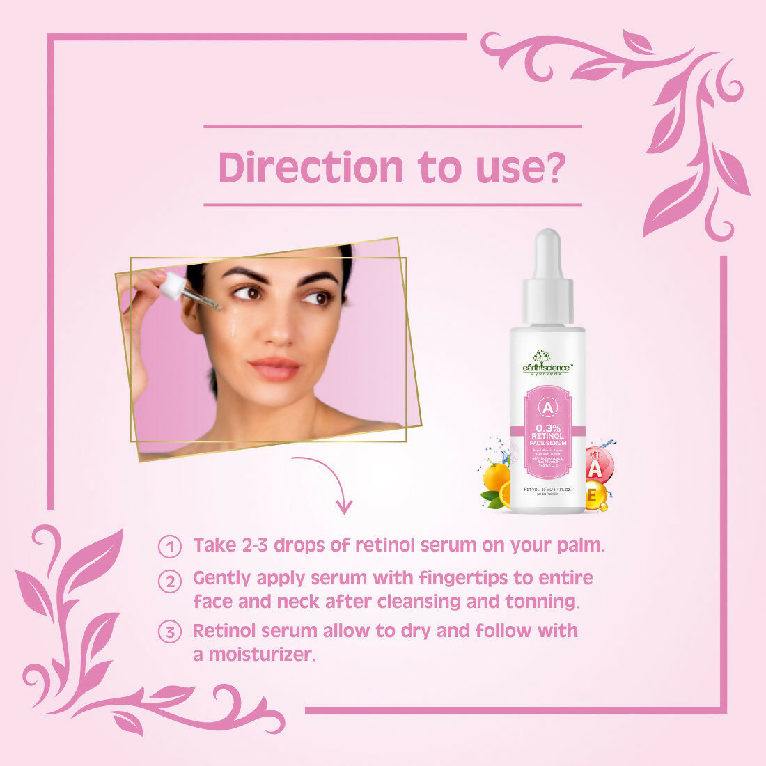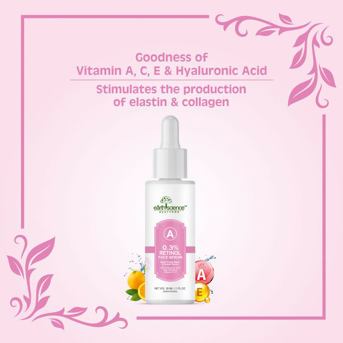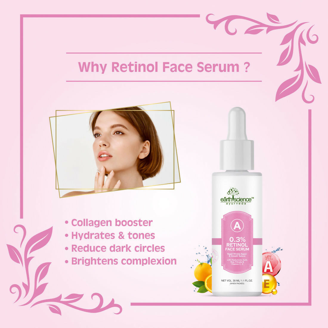 The Earth Science Ayurveda 0.3% Retinol + Hyaluronic Acid Night Face Serum is a powerful formulation crafted to address a variety of aging indicators. Below is an overview of its primary components and their potential advantages:
