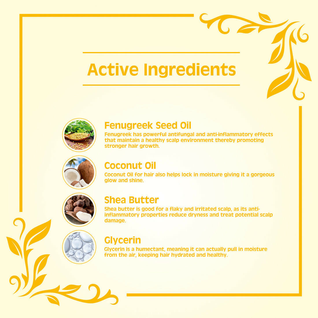 Apply the Hair Mask: Dispense an adequate amount of the Fenugreek Hair Mask, applying it evenly to your damp hair, concentrating on the lengths and tips. Use a wide-tooth comb or your fingers for even distribution.