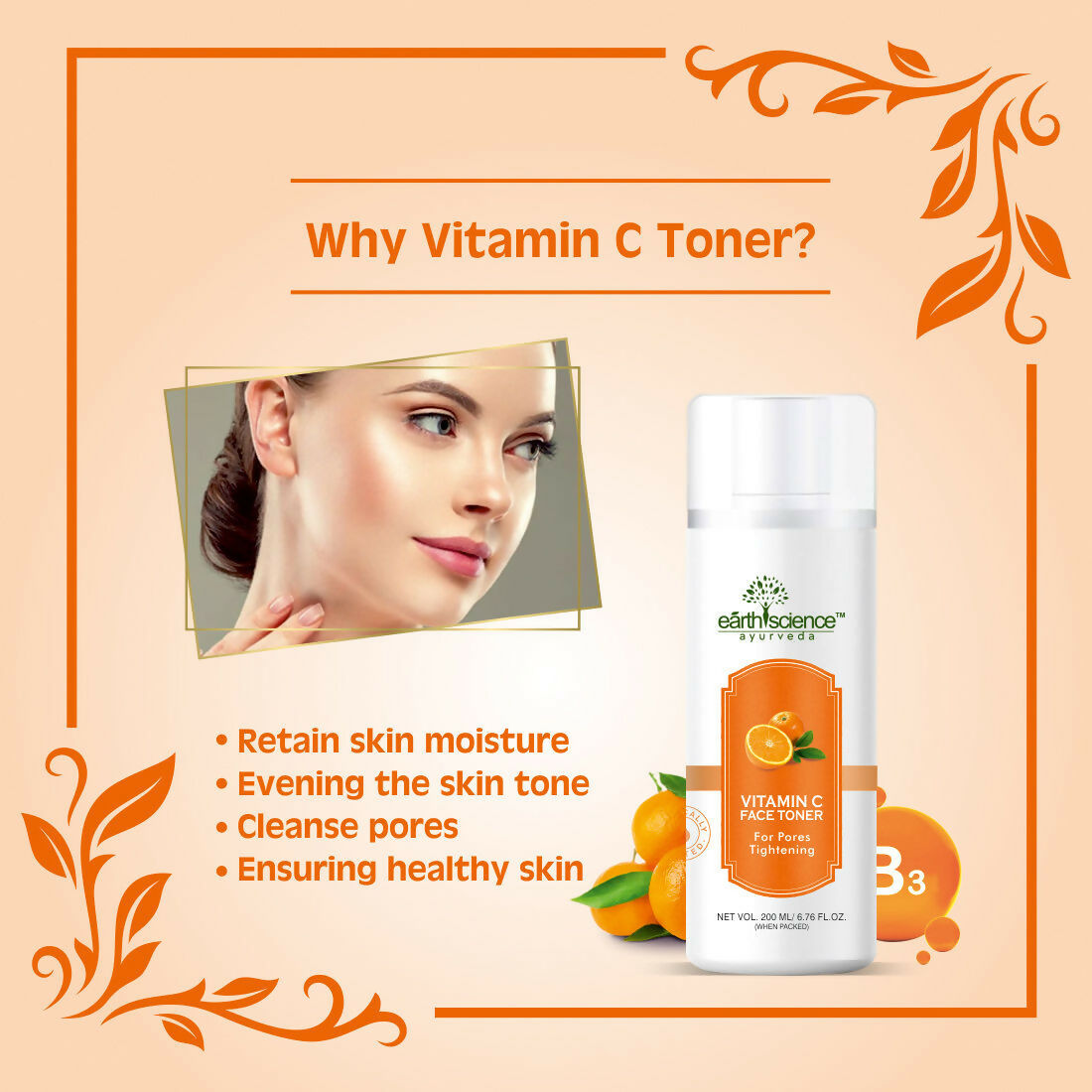 Experience the revitalizing touch of Earth Science Ayurveda Vitamin C Face Toner, enriched with Niacinamide and Hyaluronic Acid, crafted to enhance your skin's natural radiance. Discover the remarkable ingredients and their beneficial effects: