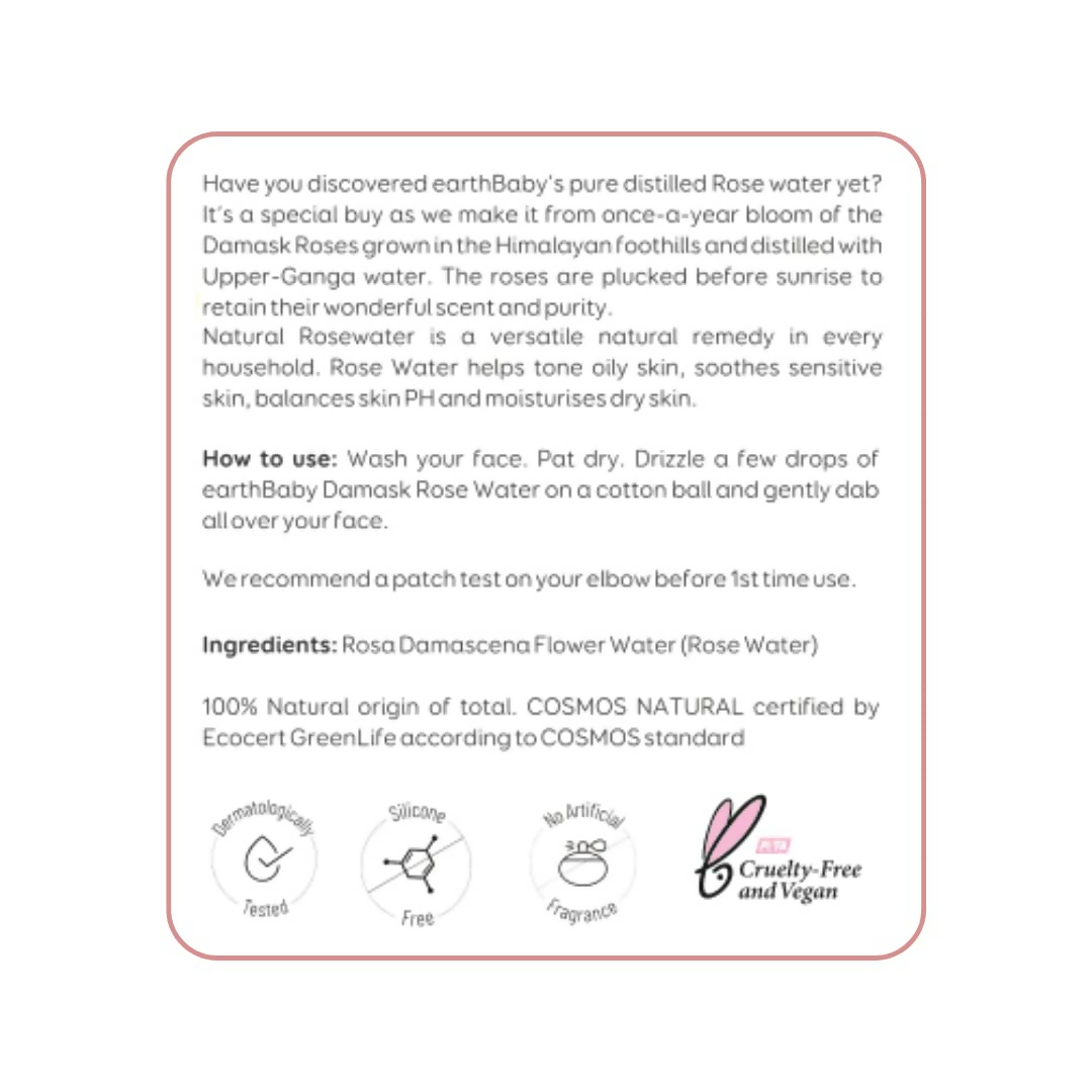 Earthbaby 100% Natural Origin Damask Rose Water Spray