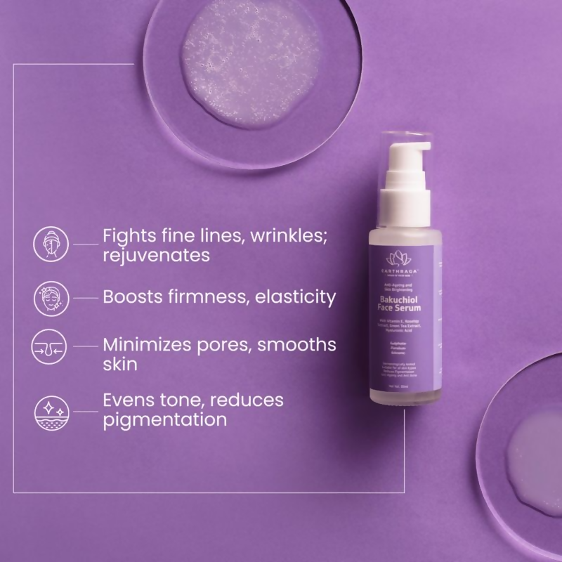 If you wish to take control of and combat skin aging, the Earthraga Anti-Ageing and Skin Brightening Bakuchiol Face Serum is a vital component of your skincare routine. This exceptional serum not only provides potent anti-aging benefits but also efficiently diminishes pigmentation and boosts skin luminosity, resulting in a vibrant and youthful complexion.