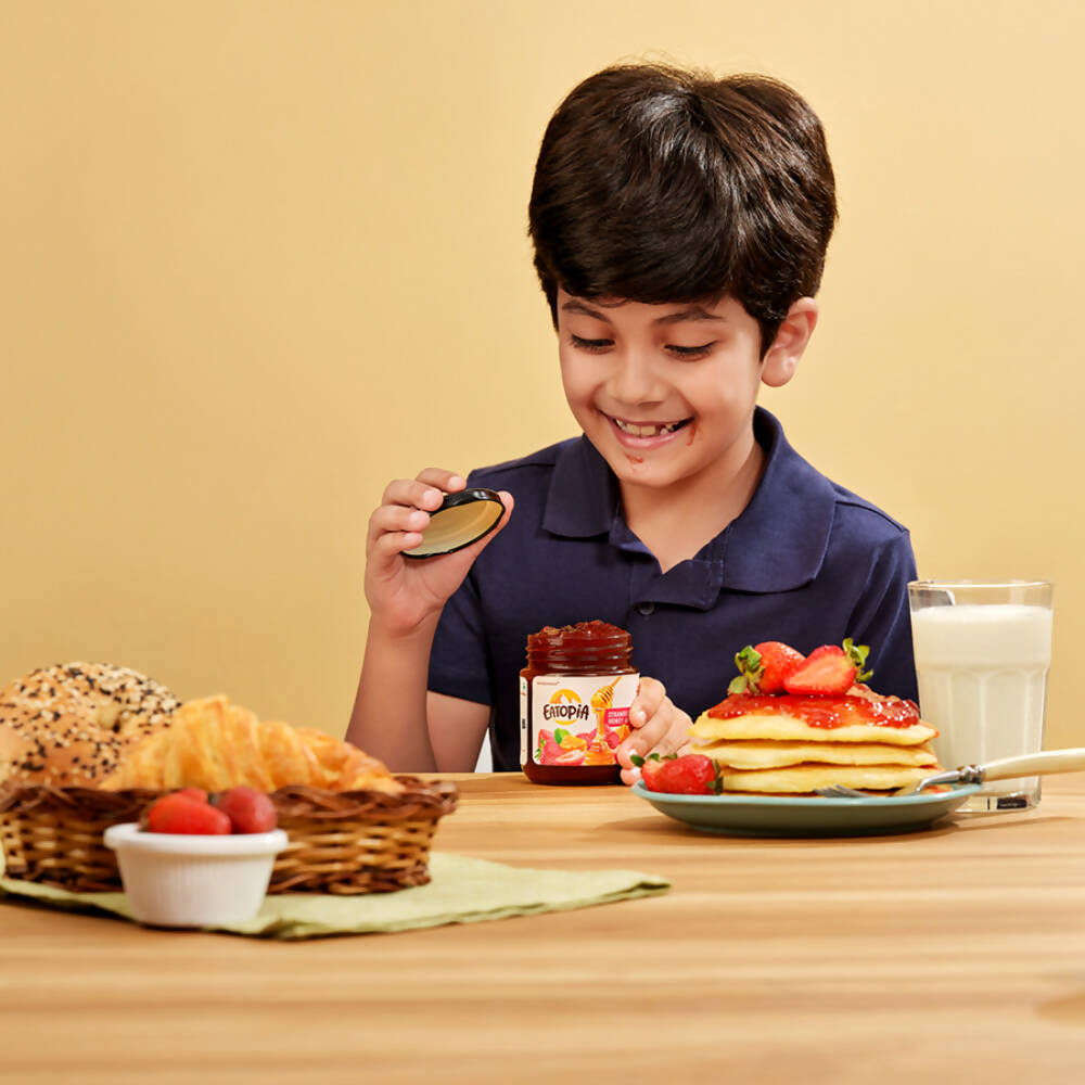 - Eatopia’s Strawberry Honey Jam is a 100% clean label product, crafted from genuine and natural strawberries combined with pure wild honey, completely free from undesirable elements like refined sugar, preservatives, or artificial coloring. It encapsulates the pure, wholesome nutrition and the delectable taste of exotic superfoods, seamlessly blended to enhance your experience without compromising your health.