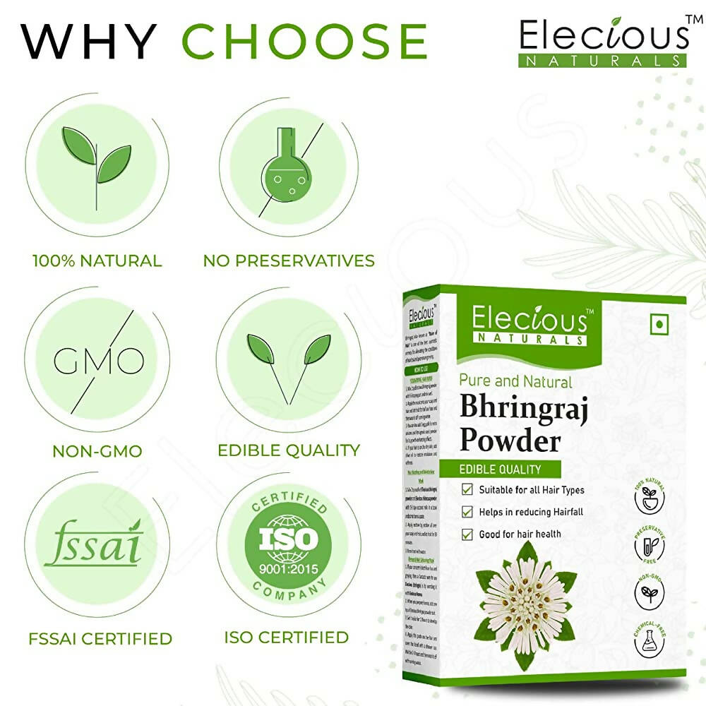 - Elecious Bhringraj powder is devoid of any preservatives or pesticides, making it safe for consumption as well.
