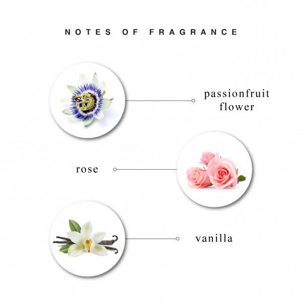 - The enticing, sweet aroma of Passionfruit blossoms combines with the timeless notes of Roses and exotic Irises. This fragrance is crafted to make a woman feel confident, sparking a sense of adventure and romance.